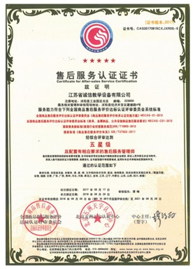 售后服務(wù)認(rèn)證證書五星